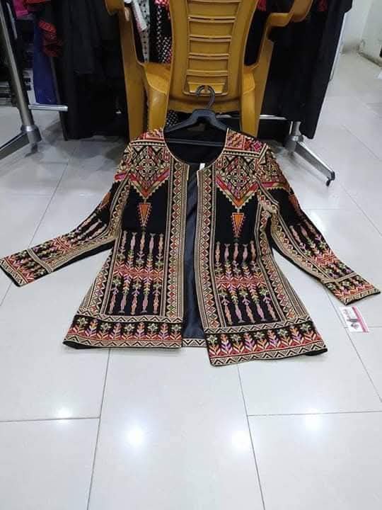 الخامة : كريب سعودي الاصلي مبطن من الداخل بالكامل تطريز : ايتامين الجاكت :متطرز من الامام ومن الخلف