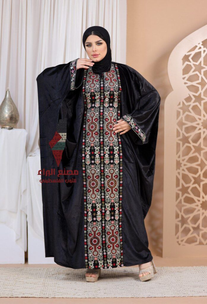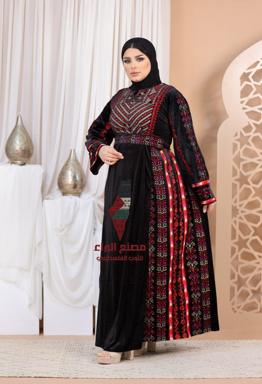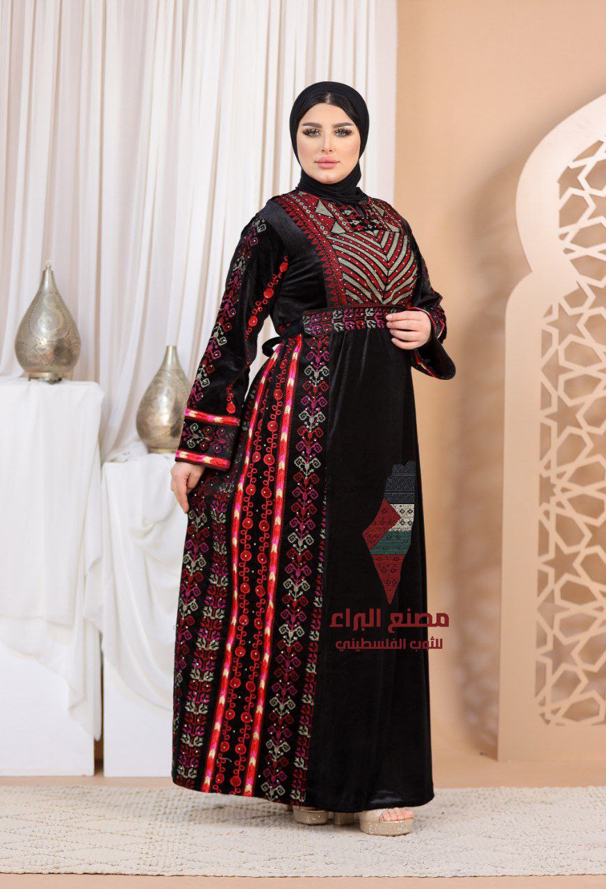 اسم الموديل : ملكي بالمخمل الالماني الخامة : مخمل الماني تطريز : ايتامني فلسطيني المقاسات مقاس 1 مقاس 2